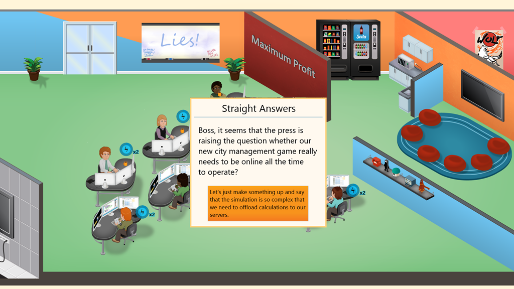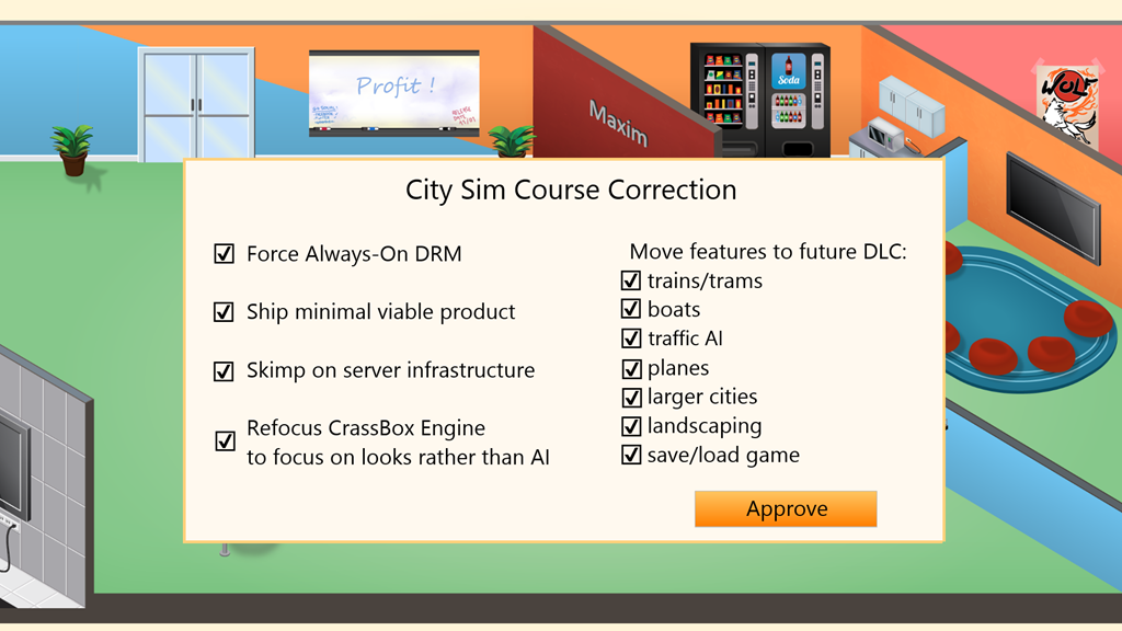 Trolling EA with the always-on requirement for city management game. Cool
